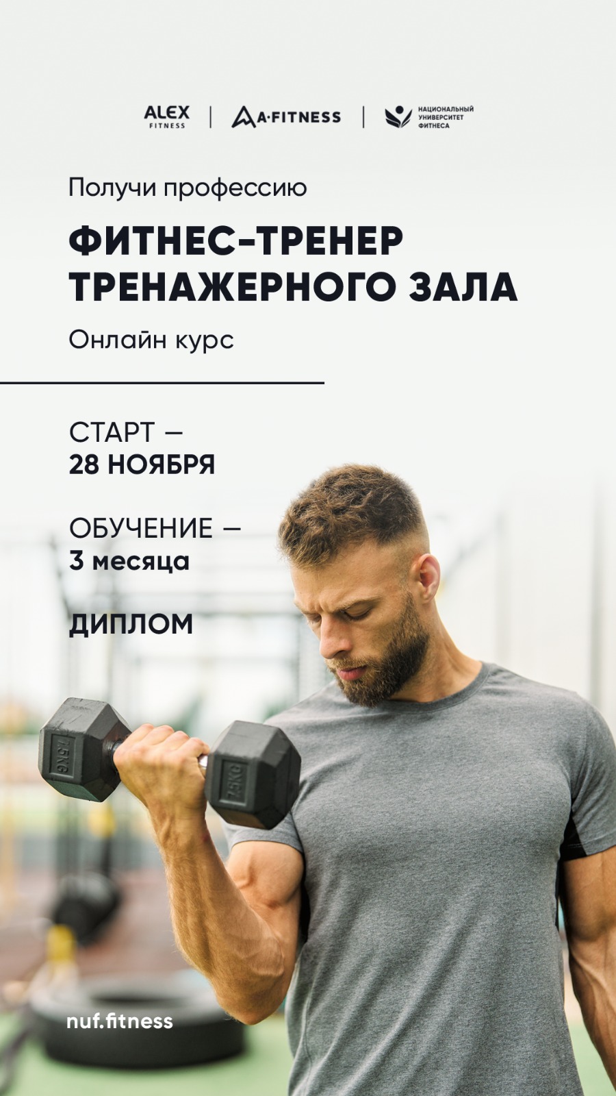 Предоставляем знания и навыки по основным направлениям: • Основы анатомии, • Основы физиологии, • Основы спортивной биохимии, • Основы биомеханики двигательной деятельности, • Спортивная медицина, • Основы нутрициологии, • Теория и методика фитнеса и бодибилдинга, • Методика функционального тренинга, • Основы продвижения в социальных сетях.